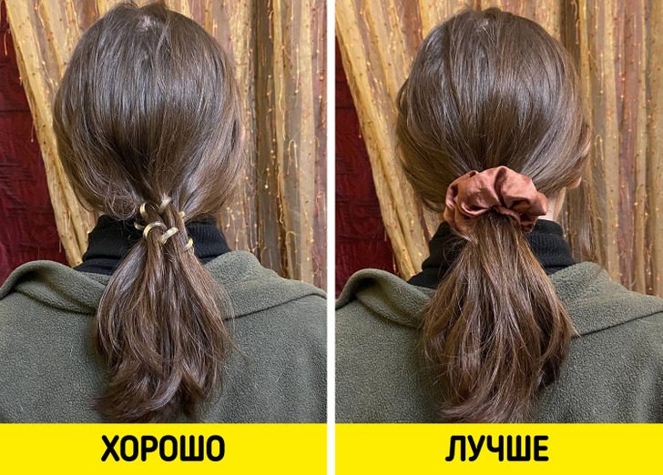 Выбор правильной резинки — хорошая инвестиция, особенно если ваши волосы достаточно длинные, чтобы пользоваться резинкой ежедневно. Обратите внимание на тканевые варианты вместо пластиковых, особенно хороши шелковые — правда, и цена на них выше, но это стоит того, ведь шелковые резинки предельно бережны к волосам, предотвращают изломы и минимизируют те изгибы, которые всегда бывают, когда мы снимаем резинку после дня носки.