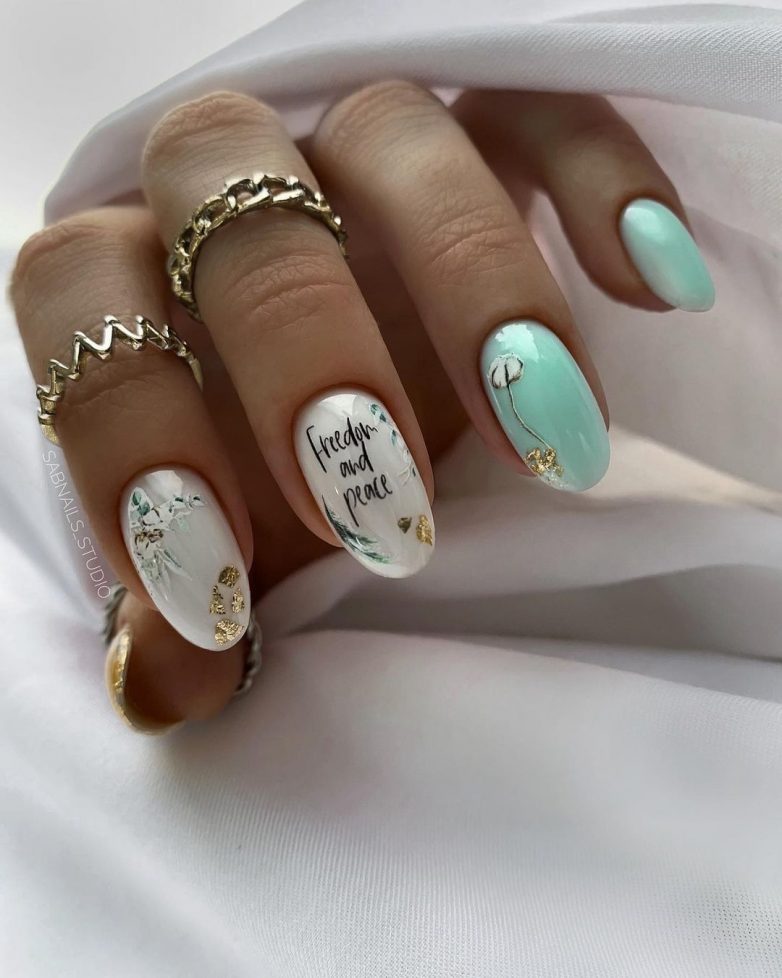 Зимняя тематика считается самой нежной и захватывающий. На ногтях можно рисовать снежные пейзажи, украшать дизайн снежинками, елочками, звездами. Круглый маникюр выглядит гораздо интереснее, если общий тон выбрать синий или белый, а рисунки, узоры и наклейки использованы в противоположном цвете. В 2022 году стоит попробовать светоотражающий лак, который тоже замечательно выглядит на круглом маникюре.
