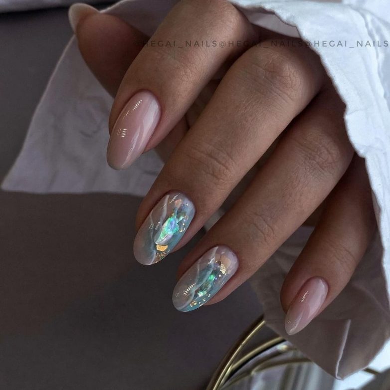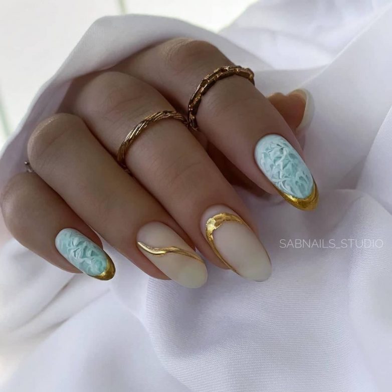 Нюдовая палитра все еще в тренде. На круглых ногтях этот естественный оттенок смотрится невероятно красиво. Маникюр подчеркнёт изысканный вкус модницы и выделит красивые и ухоженные ногти. Нюд можно украсить золотом, это тоже главная новинка 2022 года.