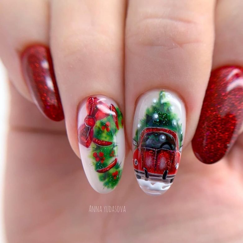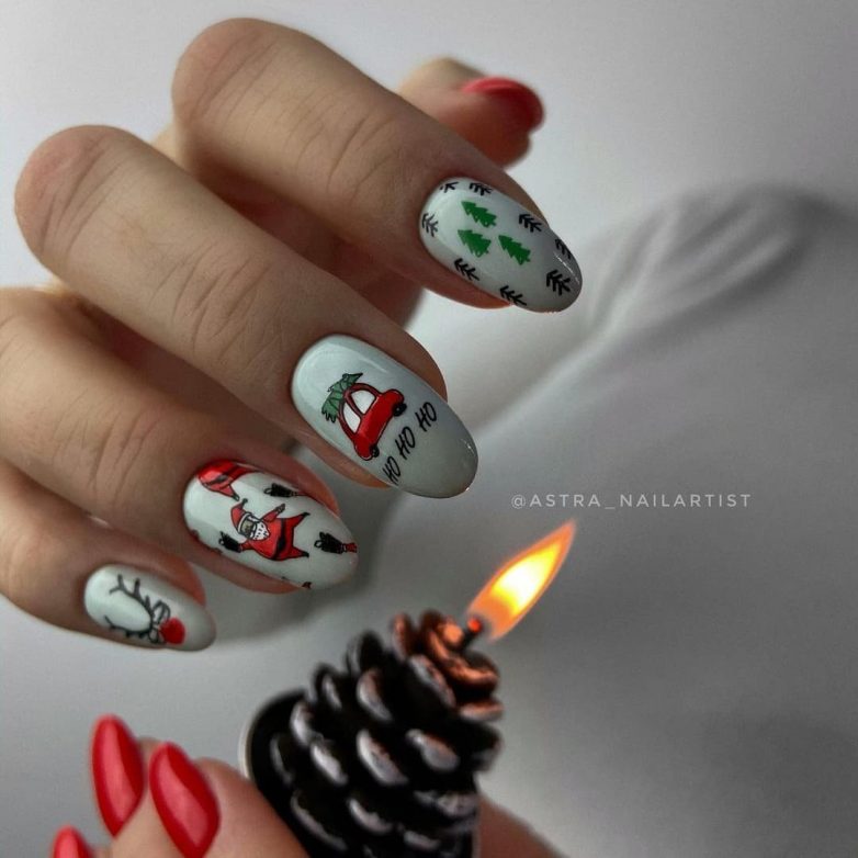Круглый маникюр с зимними рисунками