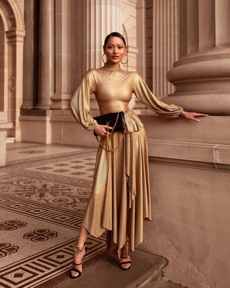 Как стильно носить блестящее платье