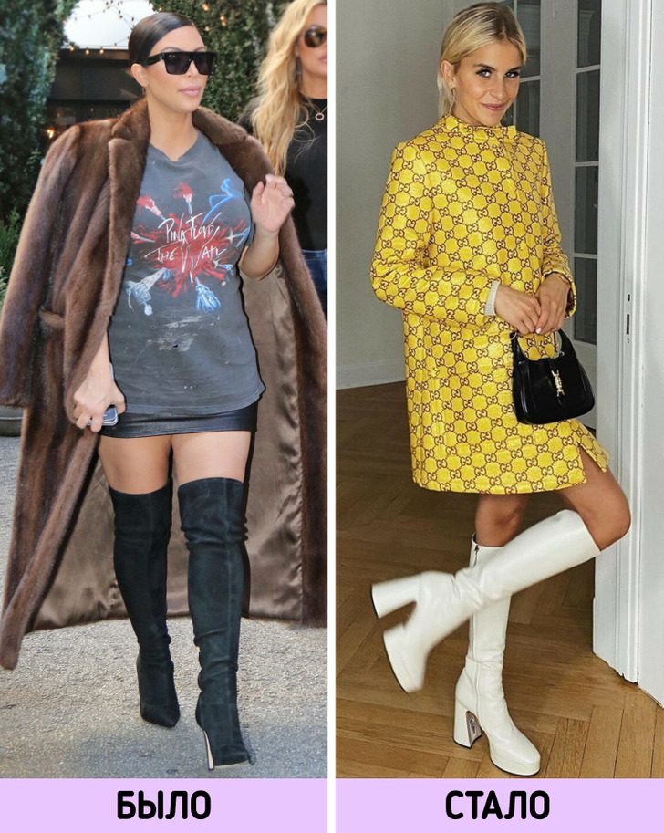 Еще недавно они были главным трендом. Но выяснилось, что такие сапоги сложно стилизовать, с ними образ зачастую выглядит неаккуратно и есть риск создать впечатление, что вы надели обувь на пару размеров больше.
