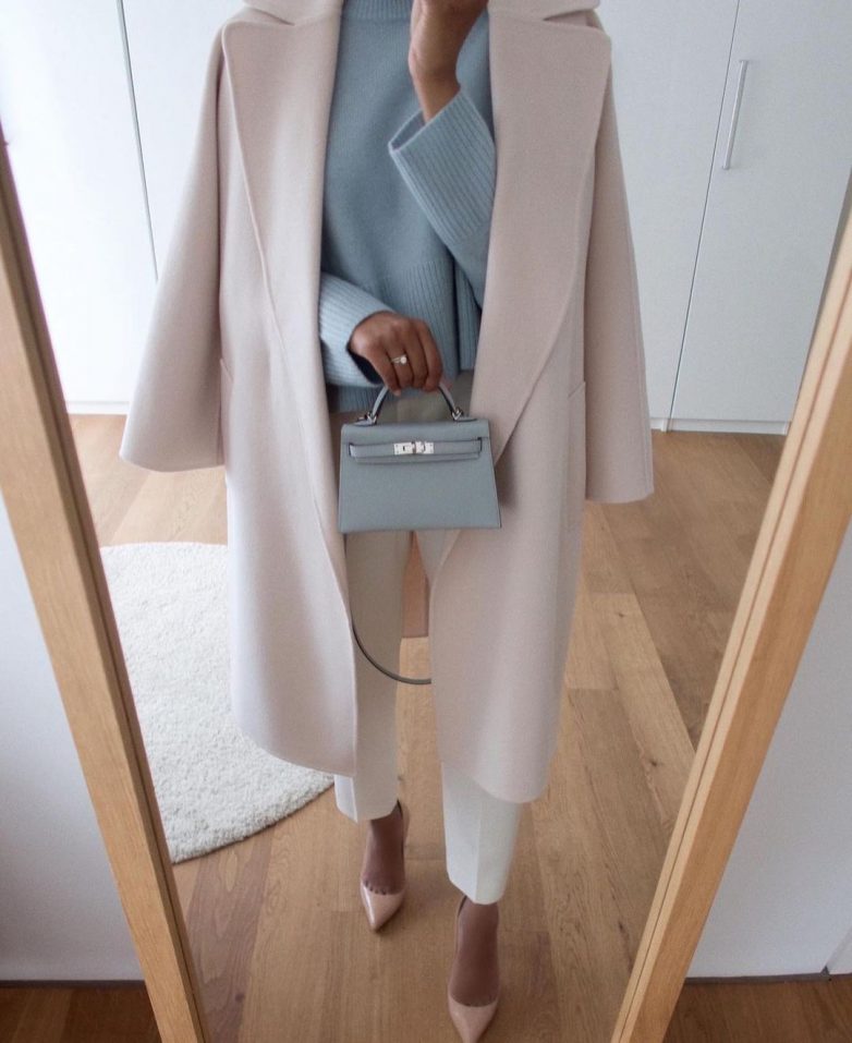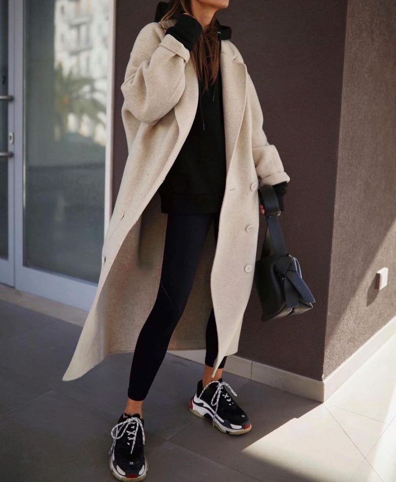 Сам по себе бежевый цвет придает образу мягкость и элегантность, освежая его. Цвет настолько универсален, что отлично сочетается с одеждой и обувью любого цвета. С ним можно создавать самые разные стили от повседневного до спортивного, грамотно дополняя сапогами или ботильонами, кроссовками и лоферами.