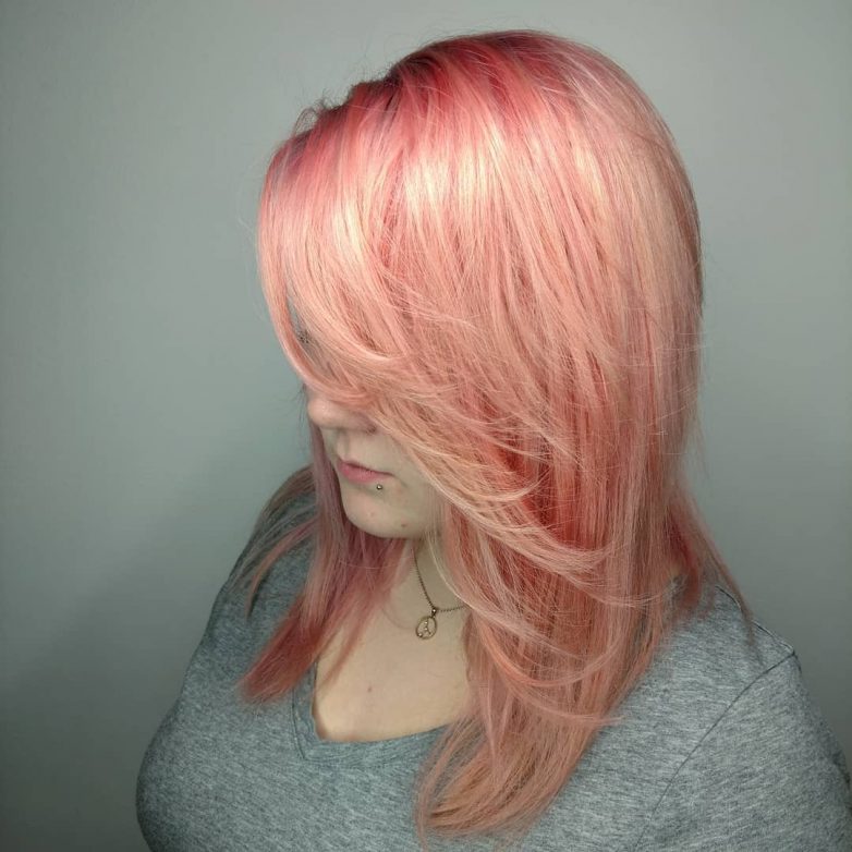 Стандартное окрашивание в блондинку или брюнетку– это может быть, слишком скучно для некоторых ярких леди. Но слишком красочное окрашивание вызывает странную реакцию общества, поэтому стилисты советуют обратить внимание на превосходный розовый цвет. Его можно добавлять в любой оттенок волос, выбирают как полное окрашивание, так и частичное или в стильных техниках омбре, шатуш, балаяж. В любом произведении розовые блики подчеркнут ваш индивидуальный и смелый характер.