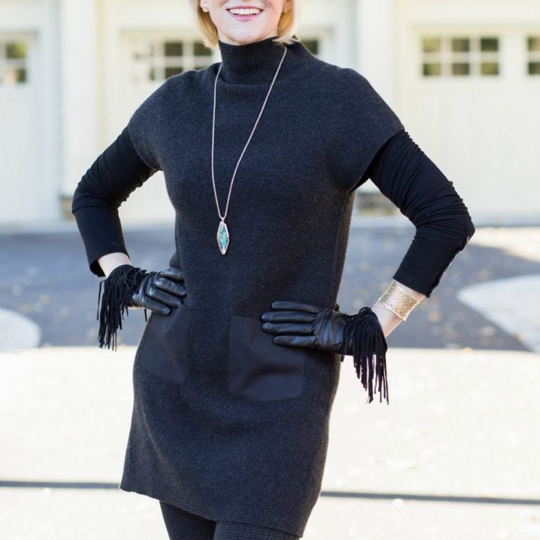 Прятать свои возрастные дефекты кожи дело не всегда правильное. Пряча шею под водолазками и свитерами с высоким горлом вы только привлекаете внимание к своим проблемным зонам. Женщину украшают блузки, кофты, свитера с V-образным вырезом. Так что держите шею по возможности открытой.