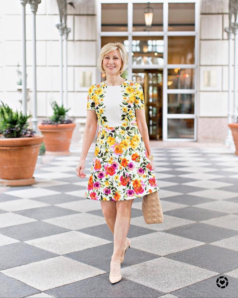 Девушкам и подросткам идут наряды с цветочным принтом. А вот взрослым дамам следует отказаться от них, чтобы не выглядеть несуразно. Однотонные платья пастельных тонов или модного скромного принта подойдут вам значительно лучше.