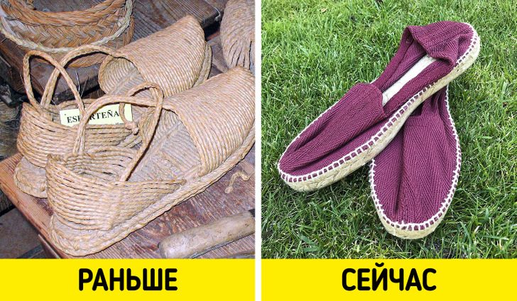 В XIV веке эспадрильи считались обувью крестьян. Доступные и легкие, они недолго служили своим владельцам. Современные варианты недалеко ушли от оригинальных. Веревочная подошва из джута и текстильный верх быстро приходят в негодность, поэтому пара на один сезон, купленная в дорогом бутике, точно не стоит потраченных денег.