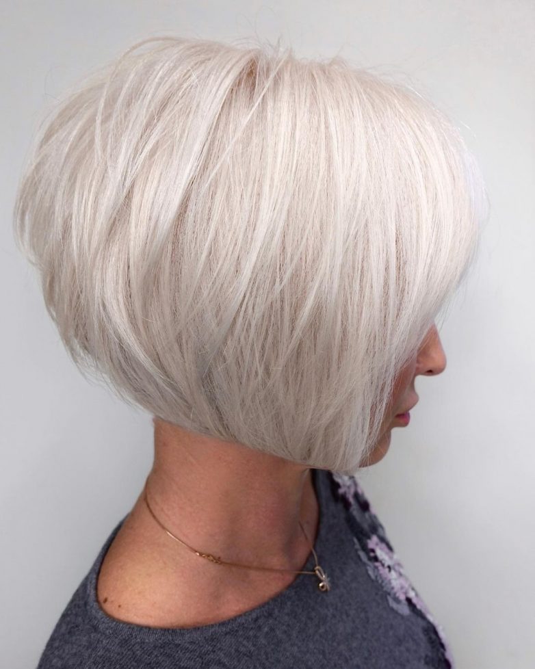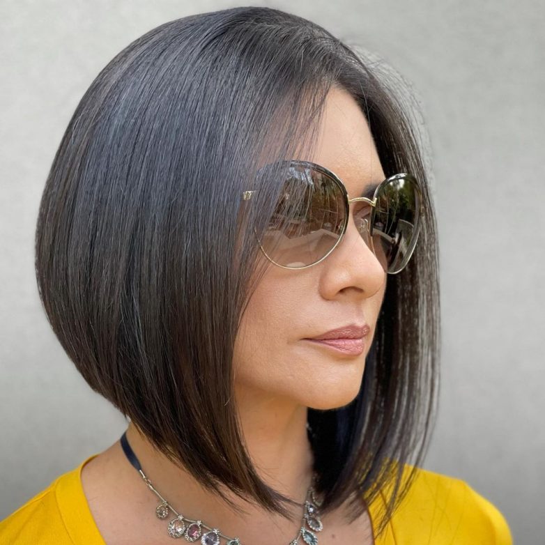 Стрижки с объемным затылком — боб или боб-каре не менее популярны среди женщин старшего возраста. Они прекрасно сочетаются с любой формой лица, делая его более выразительным. Варианты данных стрижек с челкой позволят скрыть появившиеся морщинки на лбу и так называемые «гусиные лапки».