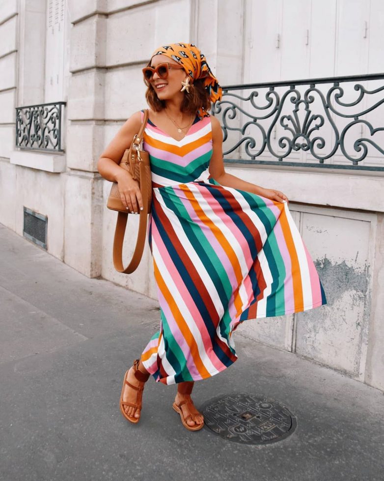 В тренде модели сарафанов в полоску, горошек и клетку. Такие принты уже классика, которая всегда будет выглядеть актуально. Светлые сарафаны в тёмную полоску отлично подойдут для образов в стиле кэжуал и делового стиля.