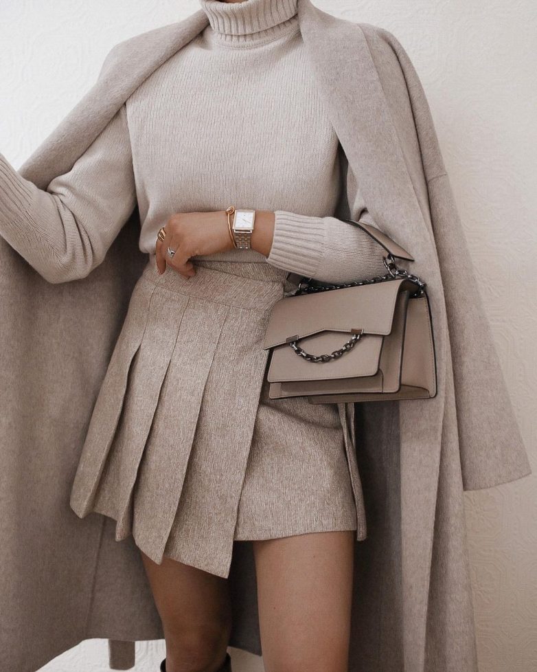 Бежевые детали — элегантный аутфит на каждый день марта 2022 года