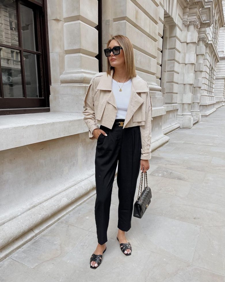 Деловой стиль диктует определенный дресс-код. Именно классические черные брюки с высокой посадкой являются беспроигрышным выбором для создания офисного стиля. Классика отличается не только строгим кроем, но и правильной длиной брюк: они не должны быть короткими, или напротив лежать на полу.