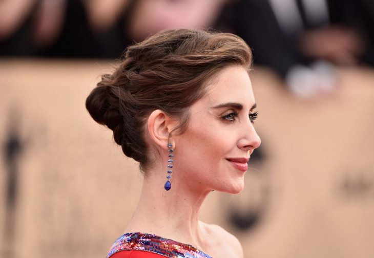 Пучок дает возможность каждой женщине создать очень солидный деловой образ. Элиссон Бри решила добавить в простой пучок немного оригинальности и дополнила прическу стильным плетением. В итоге укладка идеально подходит к торжественному образу звезды.