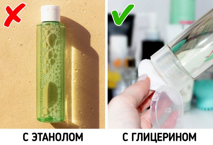 А еще есть глицерин — это тоже спирт. Но и его бояться не надо. Он будет вытягивать влагу из кожи только при очень высоких концентрациях и низкой влажности воздуха. Или если нанести чистый 100%-й глицерин на кожу. Но такого не случится, потому что производители не добавляют его в косметику в больших количествах.