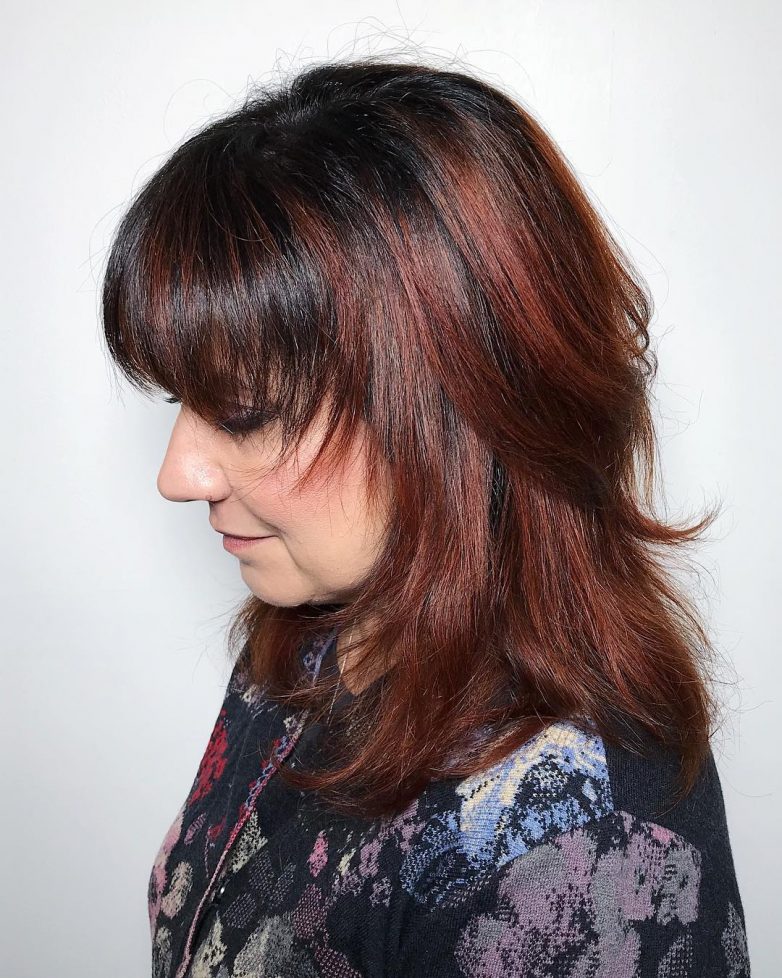 Важный этап при окрашивании на тёмных волосах – это хорошо осветлить кончики, на 4-5 тонов светлее основного цвета. Если волосы были окрашены ранее, то нужно снять цвет специальным средством. В целом, балаяж на средние тёмные волосы выглядит эффектно и делает образ более свежим.