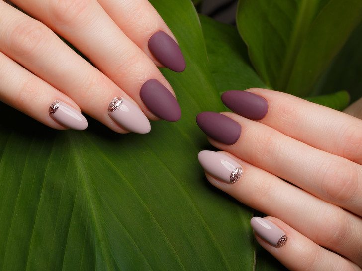 Пару лет назад в моду вошел матовый маникюр, который до сих пор остается крайне популярным. Матовый маникюр стильно смотрится практически с любыми цветами, так что выбирайте ту основу, которая вам больше всего по душе — от темных до ярких оттенков. Светлым лучше отдавать меньше предпочтения, так как на них матовость смотрится не так эффектно.