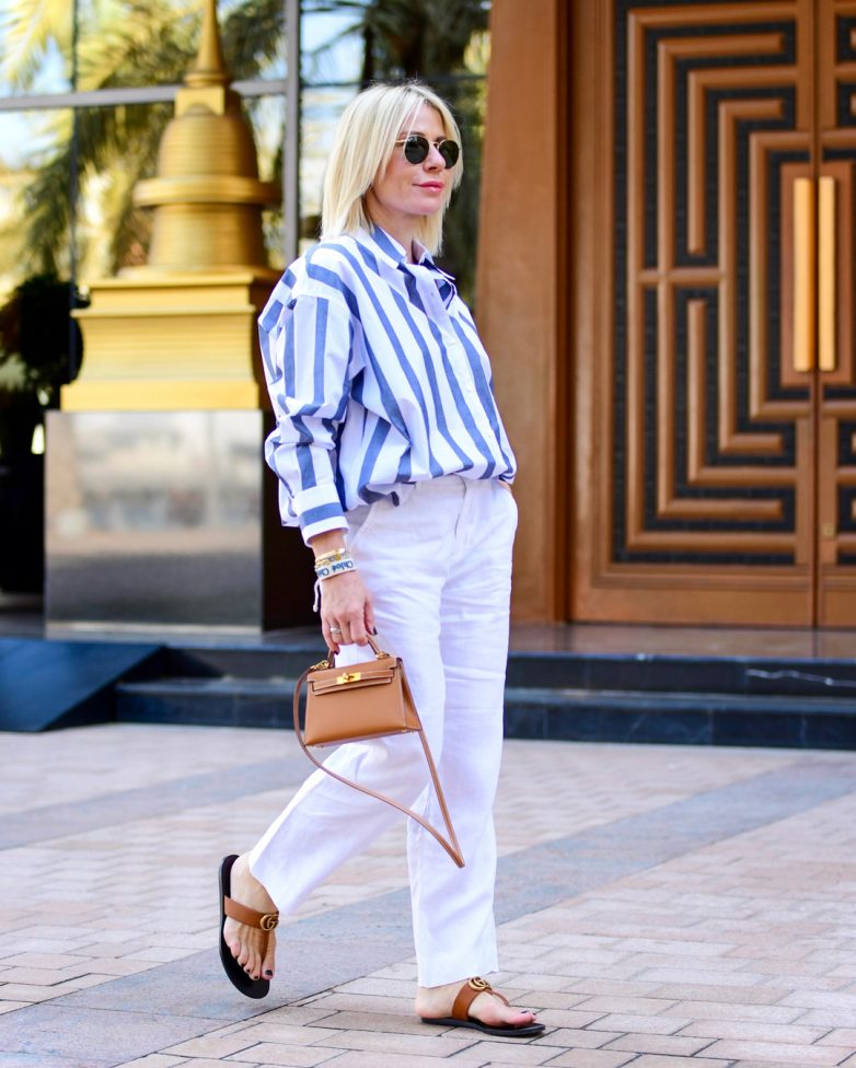 Стильный образ можно получив, сочетая обувь без каблуков с платьем или блузкой с одним оголенным плечом или глубоким декольте. Образ не будет смотреться вульгарно или пошло, а вы почувствуете себя удобно и комфортно. В качестве дополнения образа подойдут мюли, лоферы, сандалии с ремешками, слипоны и кеды.