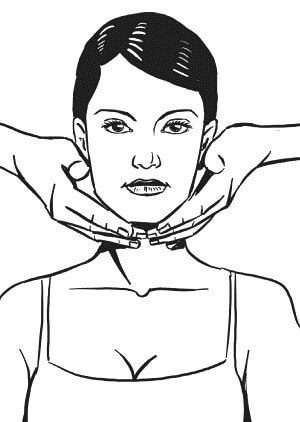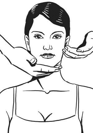 1. Расположите руки по обе стороны лица у основания шеи; затем выполните медленные поглаживания вверх, по направлению ко лбу.