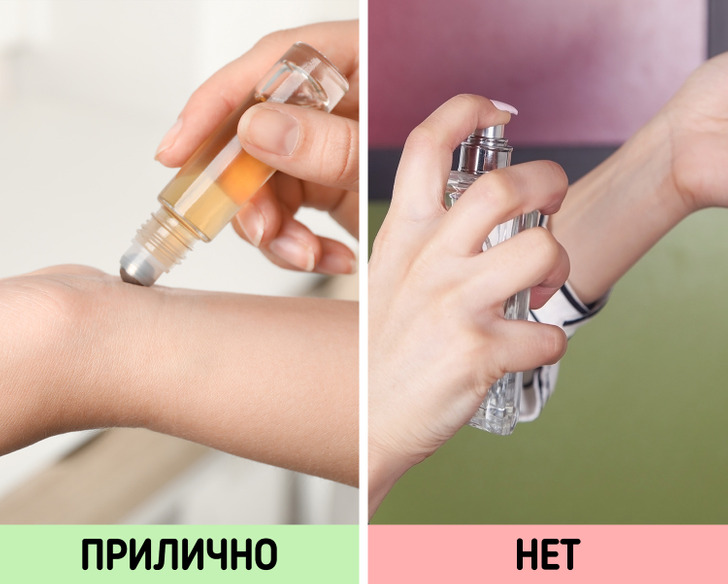 Если хочется нанести парфюм, то делать это стоит не в общественном пространстве, а, к примеру, в машине. Но такая возможность есть не всегда, поэтому, если духи с пульверизатором, лучше заранее перелить немного в шариковый атомайзер. Его удобно носить с собой, и можно незаметно для окружающих обновить аромат.