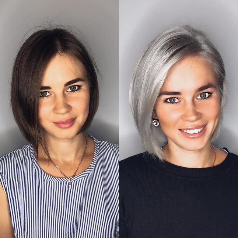 Стрижка боб во многом схожа с каре, но все-таки имеет и свои отличия. Основное отличие — это рваные пряди и небольшой переход в длине. Асимметрия же достигается с помощью косой удлиненной челки или благодаря тому, что пряди остригаются разной длины с разных сторон лица. Подойдет такая стрижка как молодым, так и женщинам постарше, которые хотят блеснуть своим креативным и смелым образом.