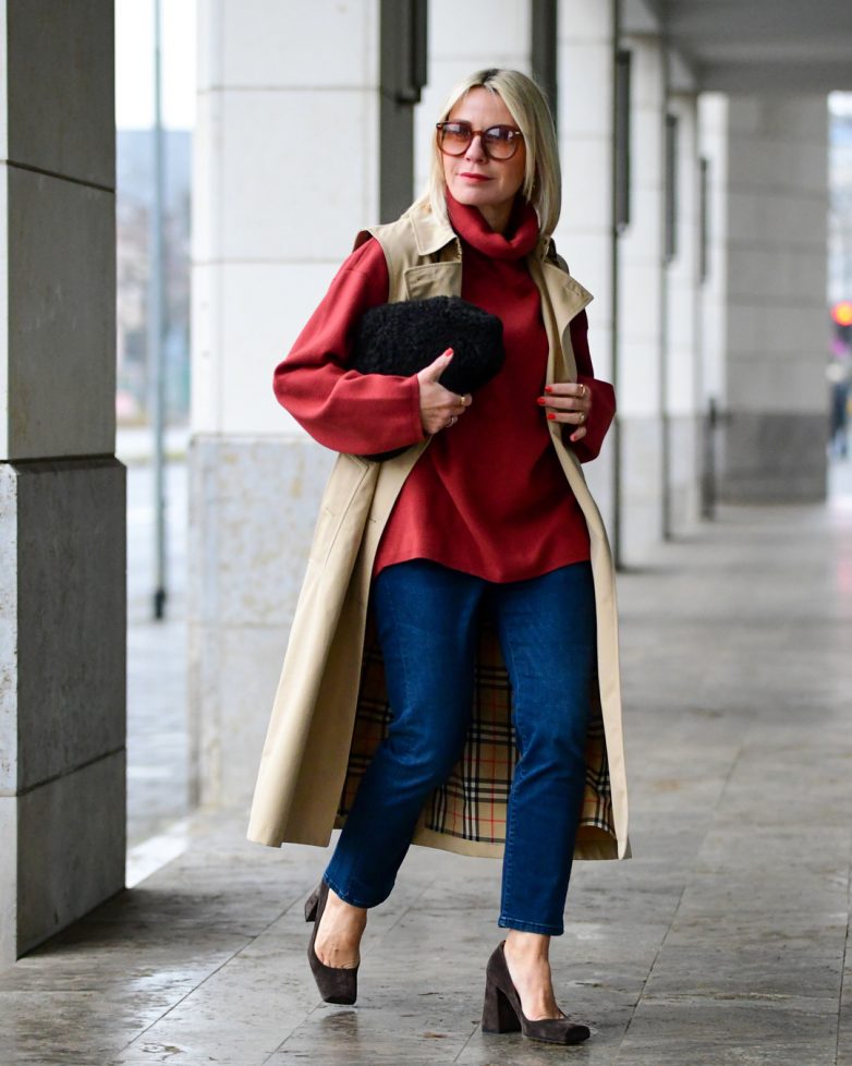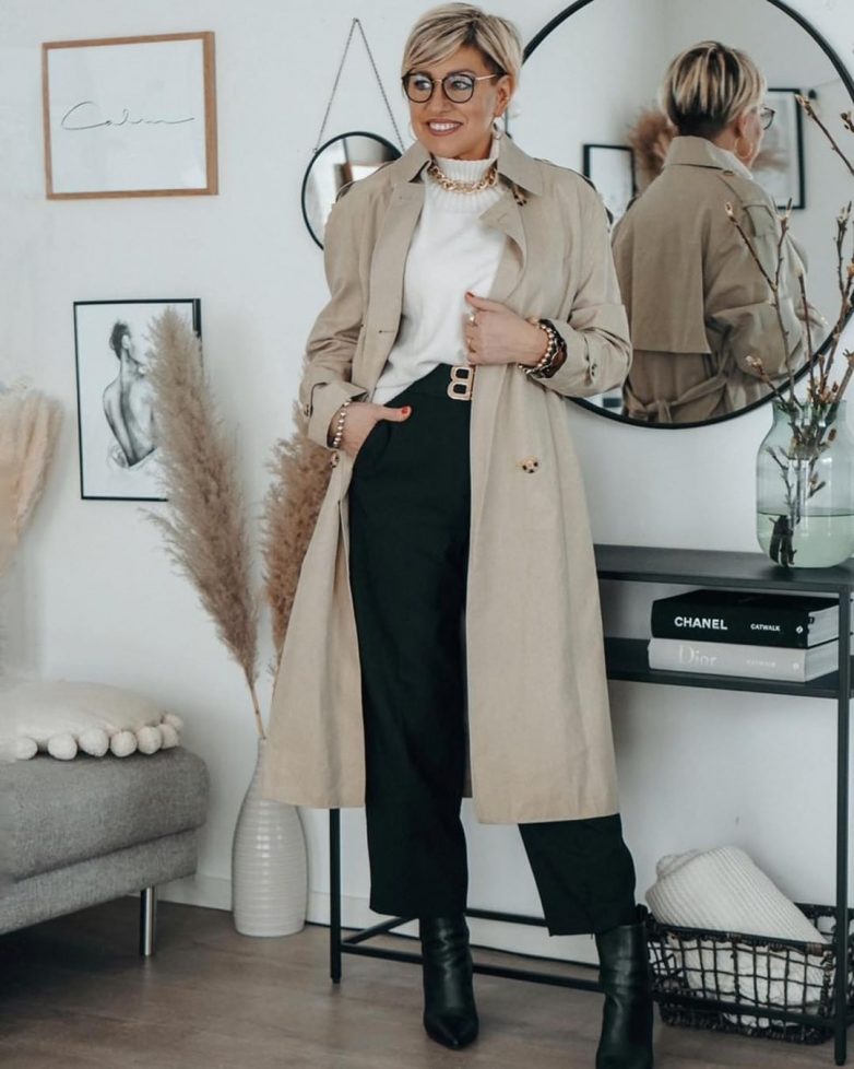 Тренч – это та модель плаща, которая идеально подходит для дам элегантного возраста. Он выглядит на женской фигуре безупречно, выигрышно подчеркивая достоинства фигуры. Тренч отлично гармонирует с туфлями, ботильонами, ботфортами, легко вписываясь в повседневный и деловой образ. Эффектно смотрится дама в тренче, дополненном элегантной шляпкой и стильными туфлями.