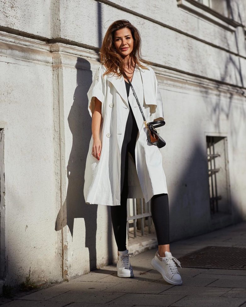Даму бальзаковского возраста белый плащ будет прекрасно освежать и молодить. Свободного кроя белый плащ из плащевки, слегка приталенная модель из белой кожи, укороченный вариант кружевного белого плаща придает даме легкость и особое изящество.