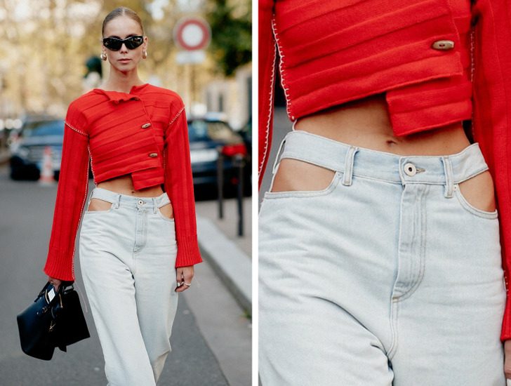 Пора забыть об одноразовых джинсовых трендах. Модели с вырезами вместо карманов на бедрах или под ягодицами смотрятся довольно экстравагантно. В прошлом сезоне подобный деним взорвал социальные сети благодаря модным блогерам и гуру стиля, но в этом постепенно уходит на второй план.