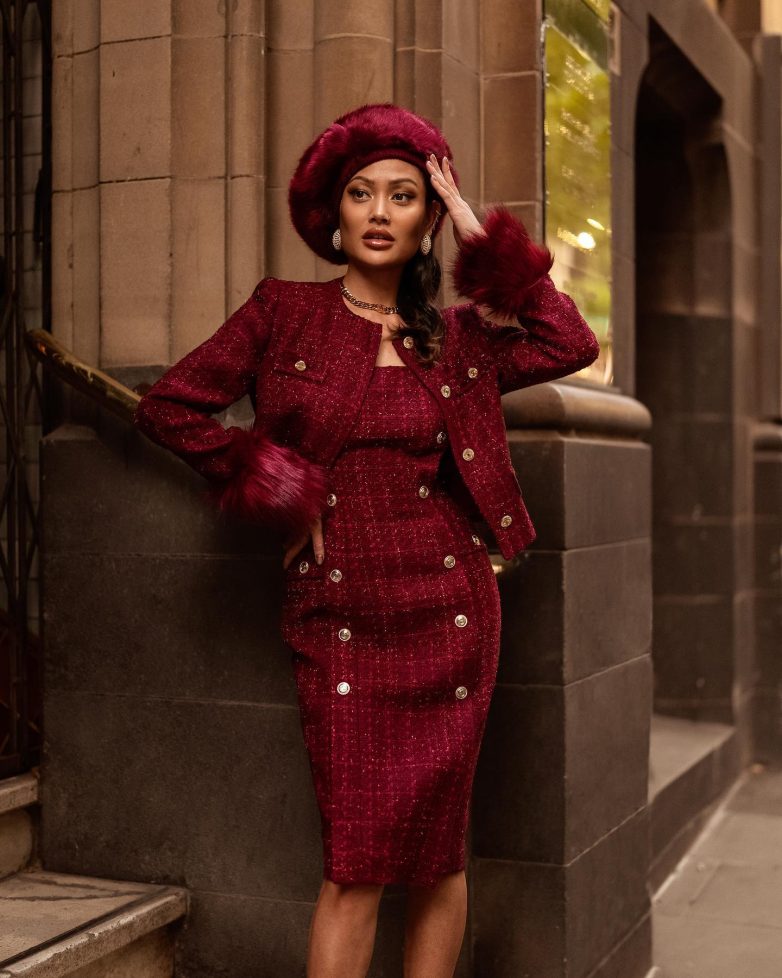 Стильное платье-футляр часто выбирают для создания модного образа в стиле леди лайк или делового сета. Соответственно, в образе точно неуместны простые вязаные шапки или кепки. Только элегантные шляпки и безупречные береты, причем желательно головные уборы подбирать под цвет платья.
