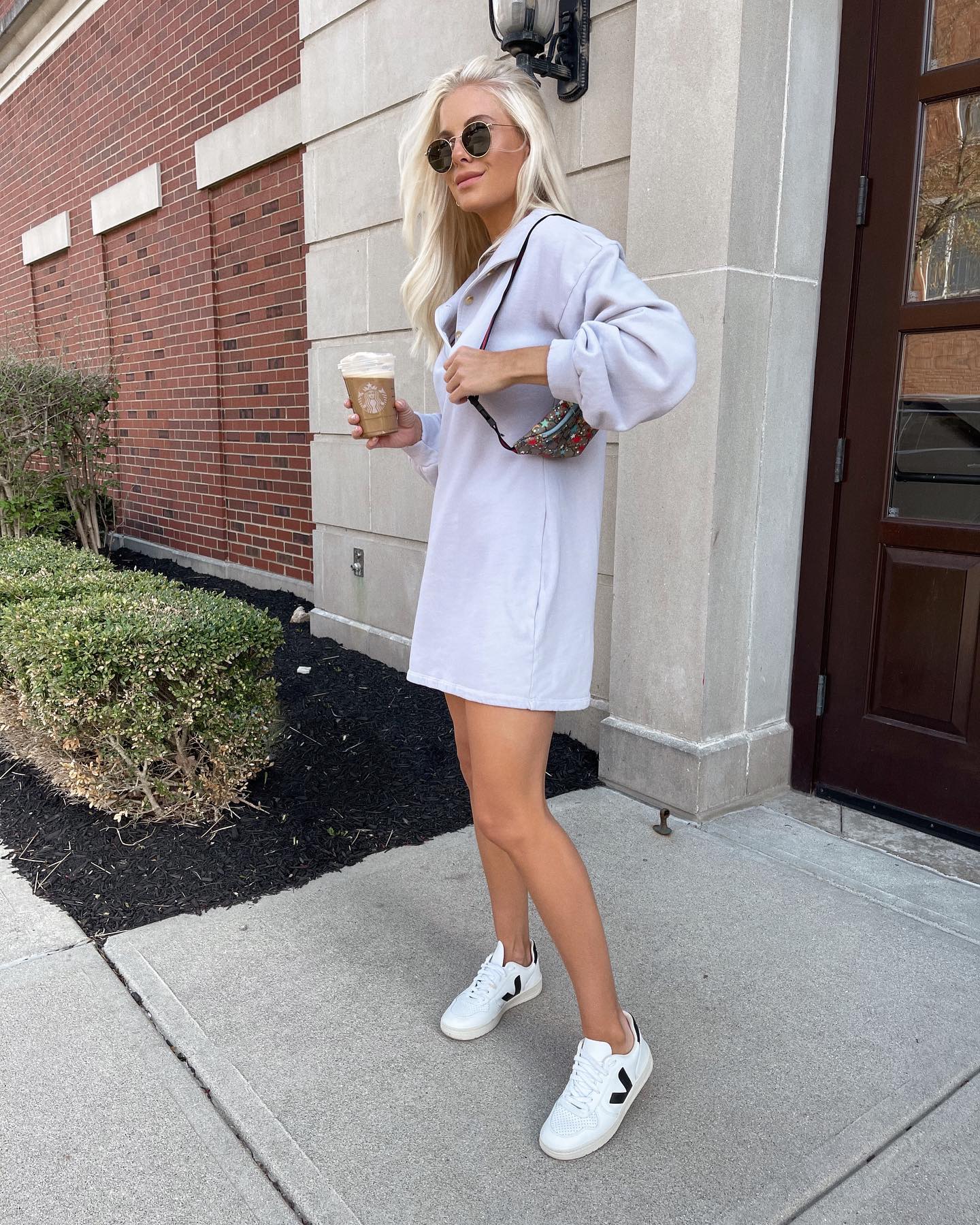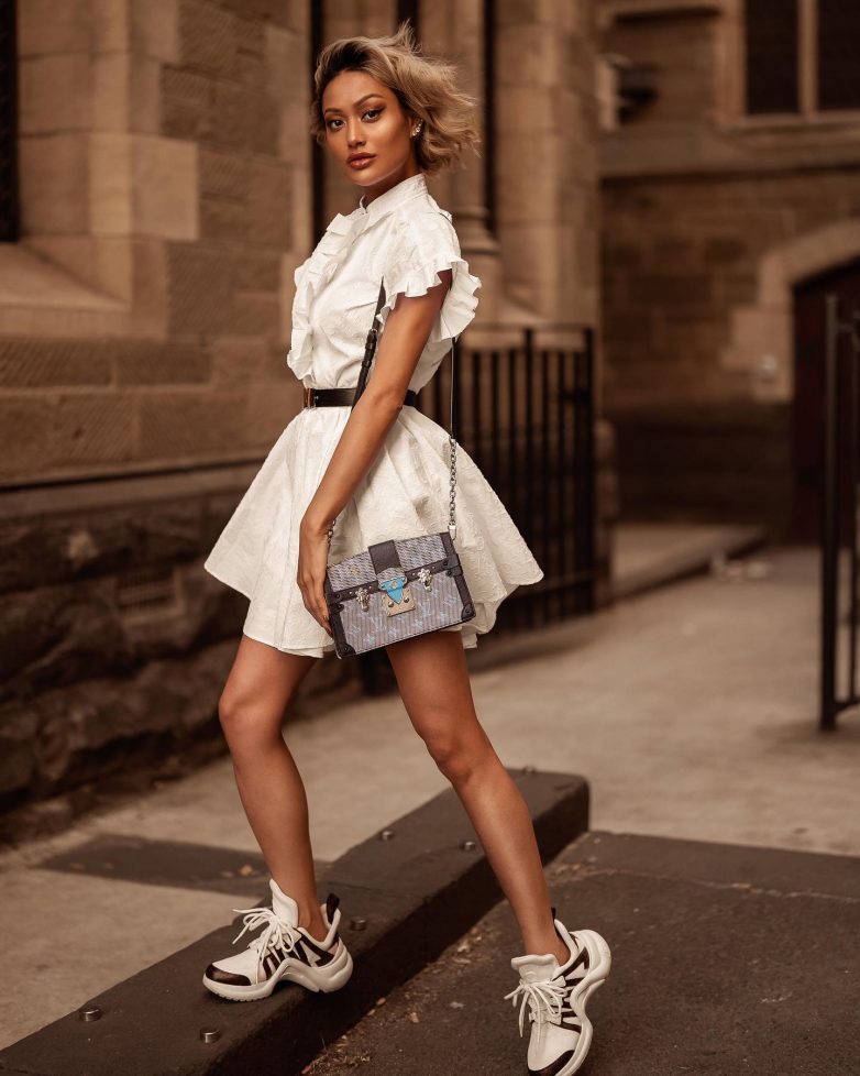 Как стильно носить облегающее платье с кроссовками и кедами летом
