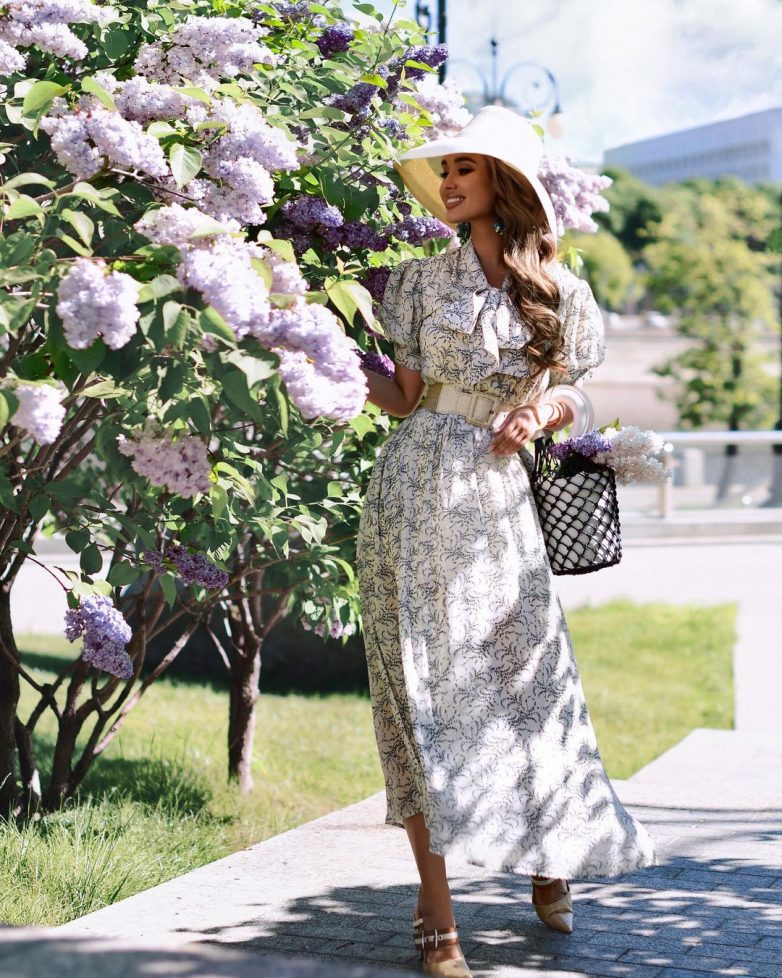 Цветочная тематика всегда к месту в летних образах. Только роскошные леди выбирают неброские оттенки букетов или минималистические принты. В этом случае вы можете создать элегантный образ, но без правильных аксессуаров и обуви он будет неполный. Стилисты советуют выбирать туфли, босоножки, лодочки в лаконичном фасоне.