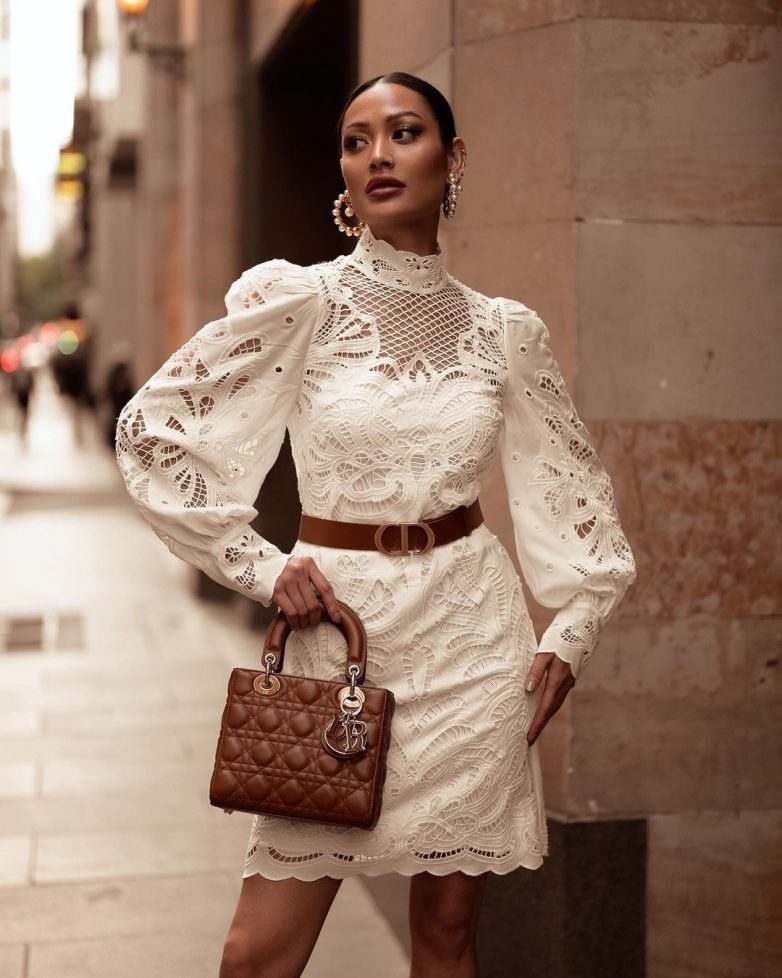 Белый цвет – это всегда изысканный и модный стиль. Женщины в любом образе выглядит в белом монохроме очень чутко и свежо, также этот оттенок чаще всего выбирают для летних сетов. Безупречное кружевное платье или стильный брючный костюм позволит леди вырваться из оков повседневных серых будней. Настолько элегантный комплект обязательно должен быть в летнем гардеробе стильной модницы.