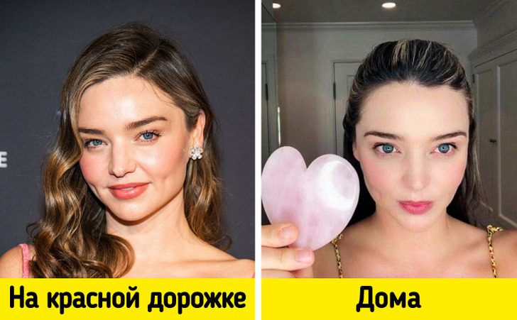 Что касается ухода за лицом, то Миранда — большая поклонница китайского массажа гуаша. Почетное место среди ее косметических инструментов занимает скребок из розового кварца. Им она каждое утро массирует лицо, чтобы снять отечность.