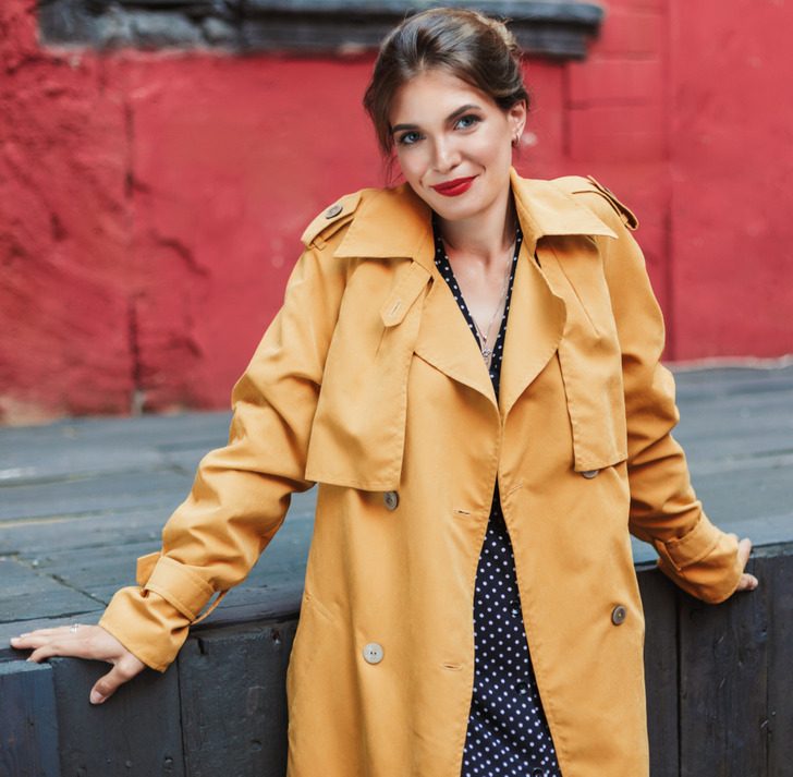 Поскольку плащ или тренч актуально носить весной, во время перепадов температур, когда под него могут быть надеты как легкая футболка или платье, так и теплые плотные вещи, то стоит отдать предпочтение плащу на размер больше. Тогда он точно подойдет во время холодной погоды, когда под ним будут дополнительные слои одежды.