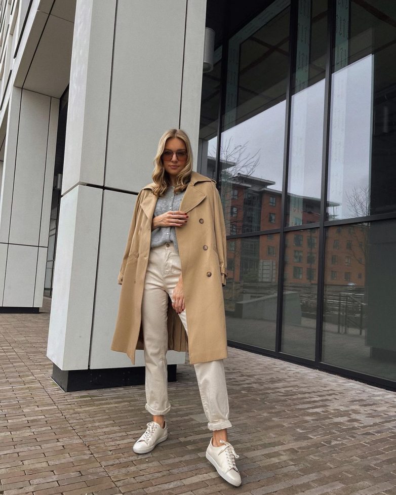 Повседневный образ может состоять из вещей разных модных направлений. Это могут быть удобные кроссовки, брюки и привлекательные тренчи. Идеально смотрятся вещи в нюдовом цвете. Благодаря сочетанию легкости, лаконичности и комфорту, дама выглядит особенно стильно.