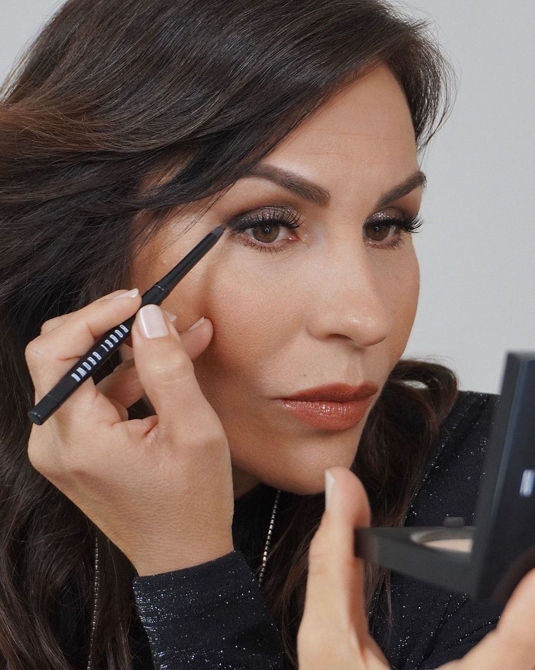 Нет, мы говорим не про подводку, а именно про черный карандаш. По общим рекомендациям его советуют использовать для внутреннего века, но точно не для создания стрелок. Еще необходимо подбирать правильный цвет, слишком черный может сделать ваши глаза слишком узкими, поэтому визажисты рекомендуют делать выбор в пользу dark brown или dark grey/blue.