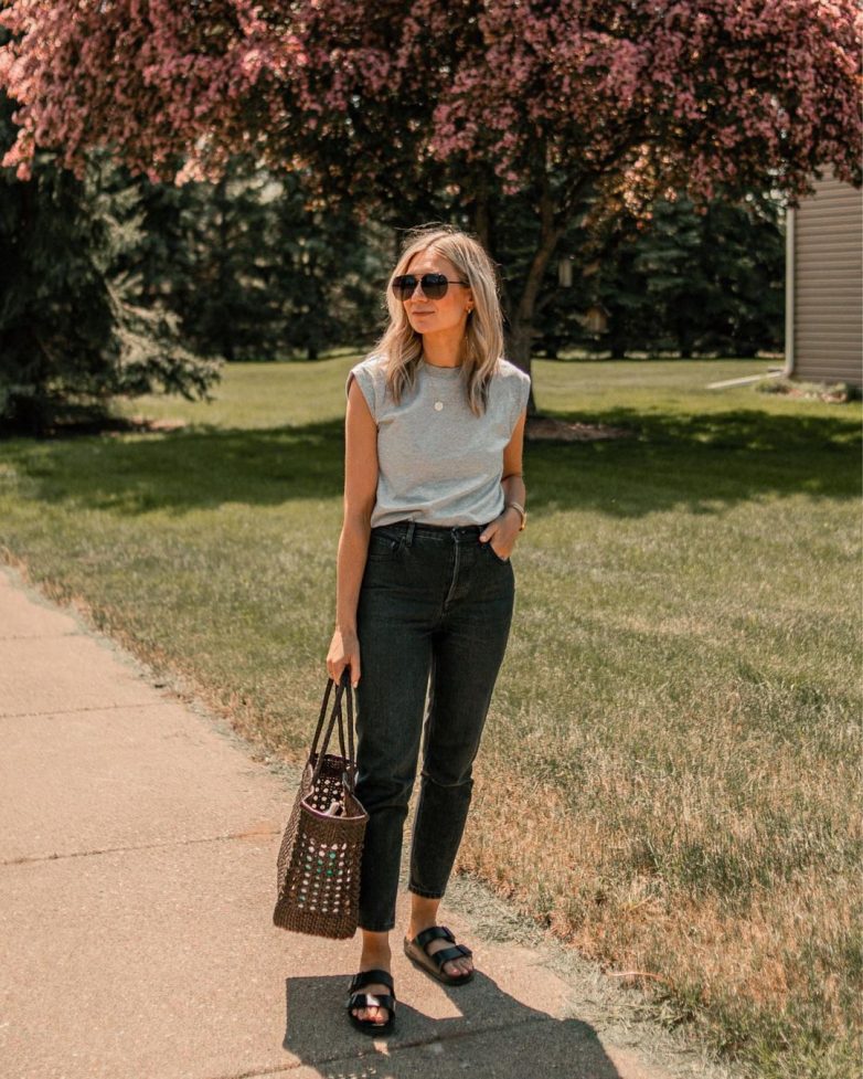 Джинсовые шорты – это лучшее изделие для создания летних комплектов. Женщинам 40-50 лет стоит выбрать лаконичный и не сильно короткий фасон джинсовых шортиков. Также стилисты предлагают подбирать модель с завышенной талией. Так как деним – это универсальные вещи, значит, верх может быть совершенно любой.