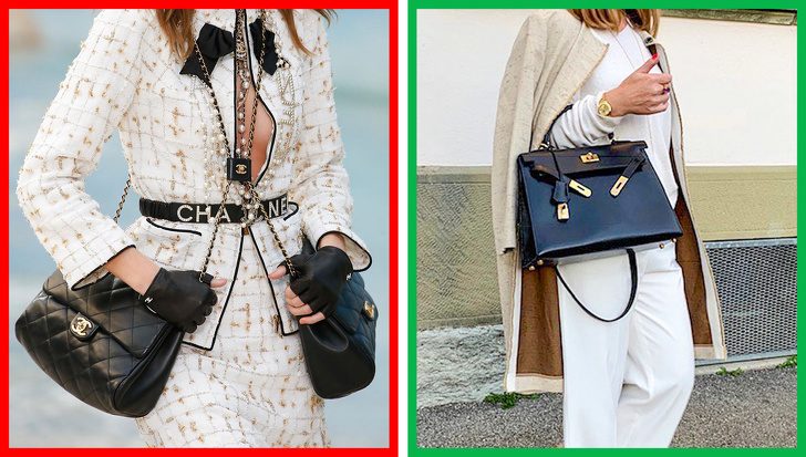 Французские блогеры пишут, что настоящая элегантность-это то, как вы умеете подать себя, а не яркие логотипы на каждой одежде в вашем гардеробе. Поэтому носить обувь, одежду или сумку дорогих и знаменитых брендов — это знак плохого вкуса. Ещё хуже, когда эти элементы присутствуют одновременно.