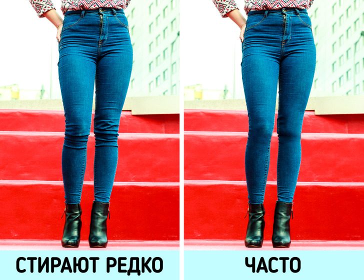 Неправильная стирка может привести к порче вещей, но и стирать их недостаточно часто тоже не вариант. Например, волокна джинсов из 100%-го хлопка во время носки «расслабляются», из-за чего джинсы со временем растягиваются. Предотвратить это поможет регулярная стирка.