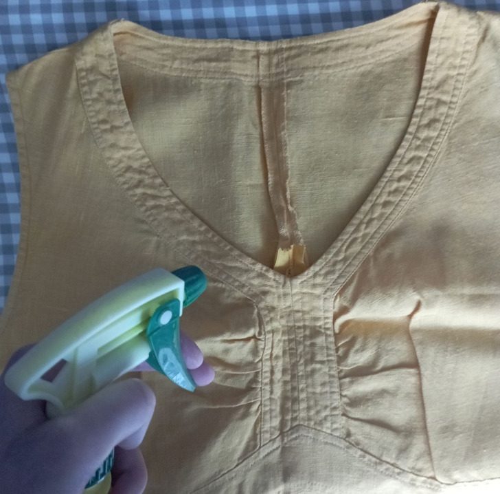Перед ноской льняной одежде нужно дать полностью высохнуть в течение 10–15 минут, иначе она быстро помнется вновь. А если вы решите использовать спрей для разглаживания складок, лучше сначала протестируйте его на изнаночной стороне ткани: некоторые средства оставляют пятна на льняных вещах, особенно на темных.