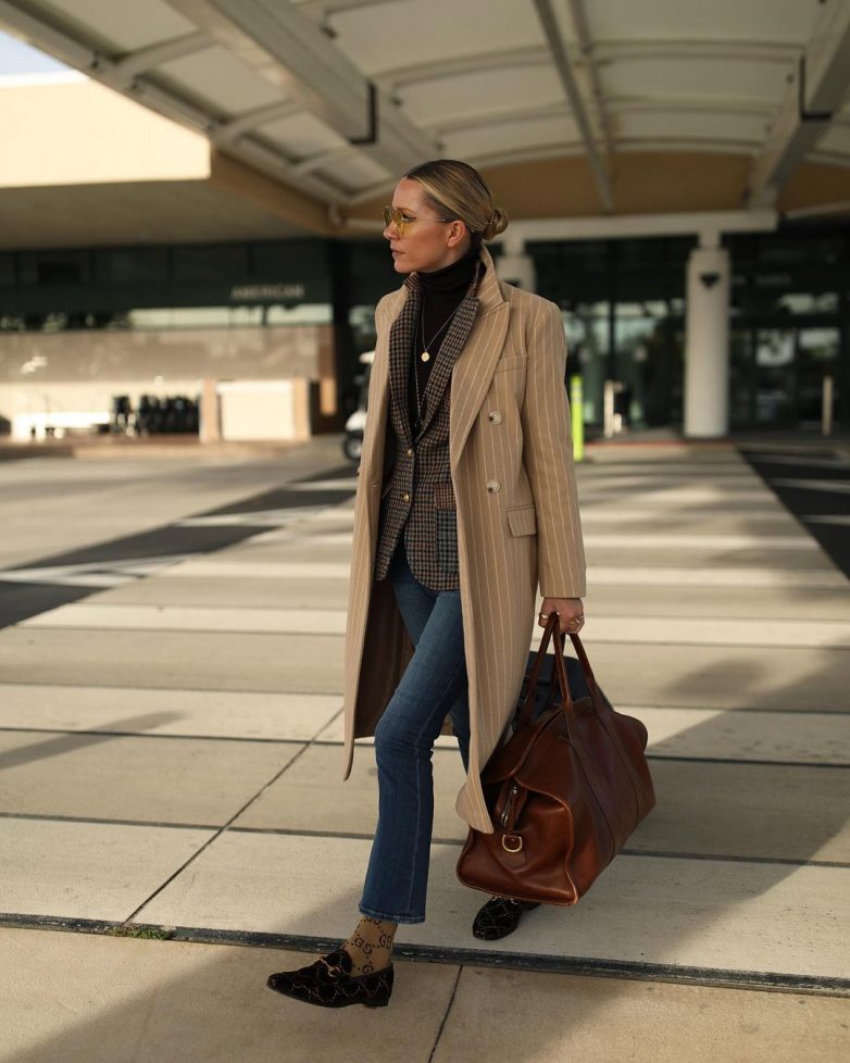 оригинальным топом + оверсайз-пиджаком или жакетом; базовой футболкой;