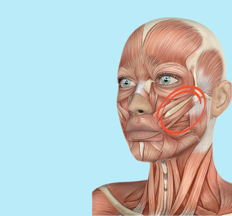 5. Расслабить жевательные мышцы с помощью массажа тремя пальцами, обработав предварительно кожу увлажняющим кремом.