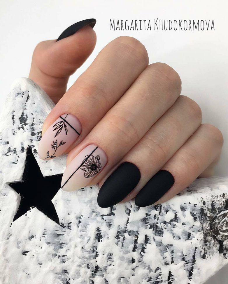 Модницы все чаще останавливают свой выбор на модном матовом маникюре. Бархатный эффект всегда создает роскошный вид. Он отлично смотрится как в насыщенных темных тонах, так и в пастельных вариантах. Особо элегантно и дорого смотрится такой маникюр в сочетании с золотым и серебряным декором, а также украшенный стразами на акцентных пальцах.