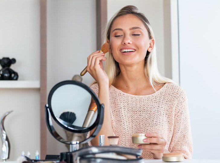 Аккуратными движениями пройдитесь хайлайтером по скулам. Средство должно покрывать только выступающую часть, то место, куда обычно падает свет. Это придаст здоровый вид коже и даже замаскирует синяки под глазами.