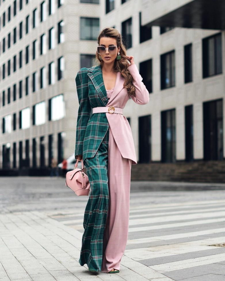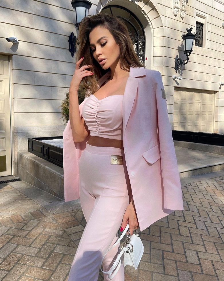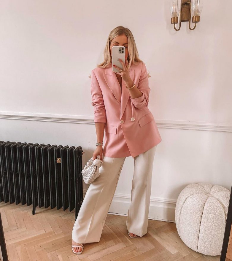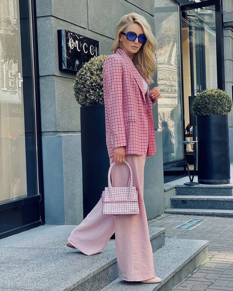 Как стильно носить розовый костюм летом