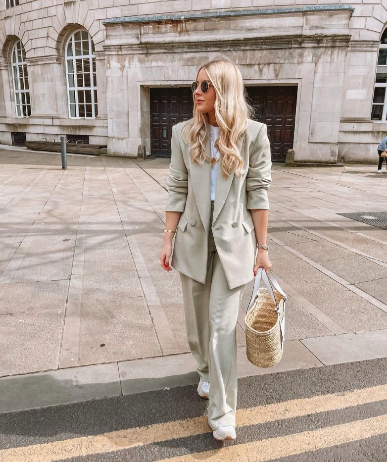 Как стильно сочетать брючный костюм с кроссовками