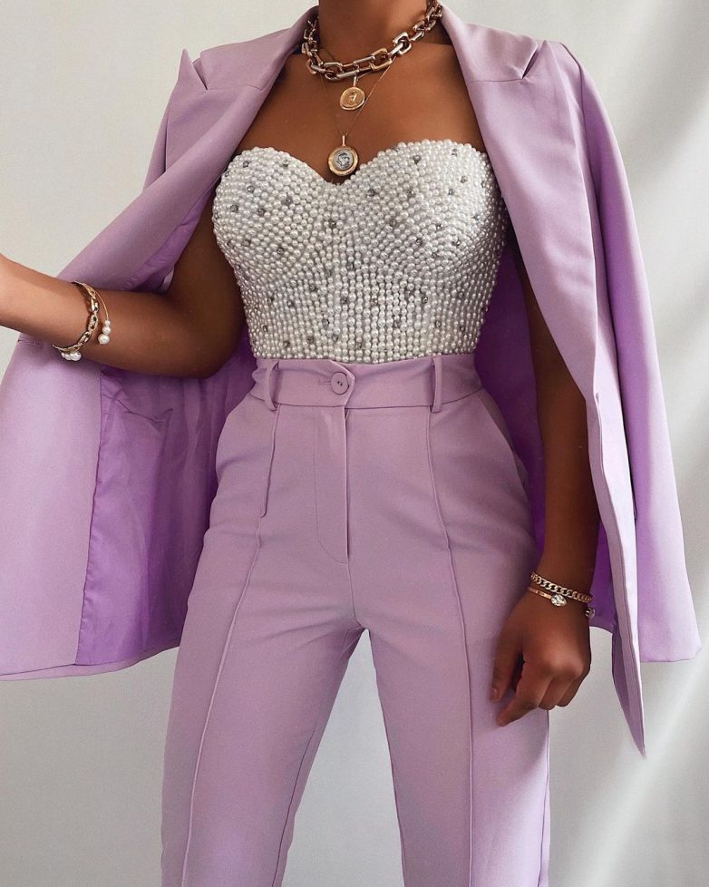 Брючный костюм с жилеткой – это идеальный вариант для летнего выхода. Если вы добавите в брючный костюм кроп-топ, тогда ваш образ просто создан для вечеринки или выхода в свет. Из обуви лучше отдать предпочтение шпилькам, чтобы завершить шикарный наряд.