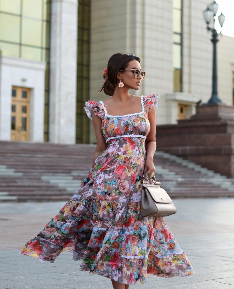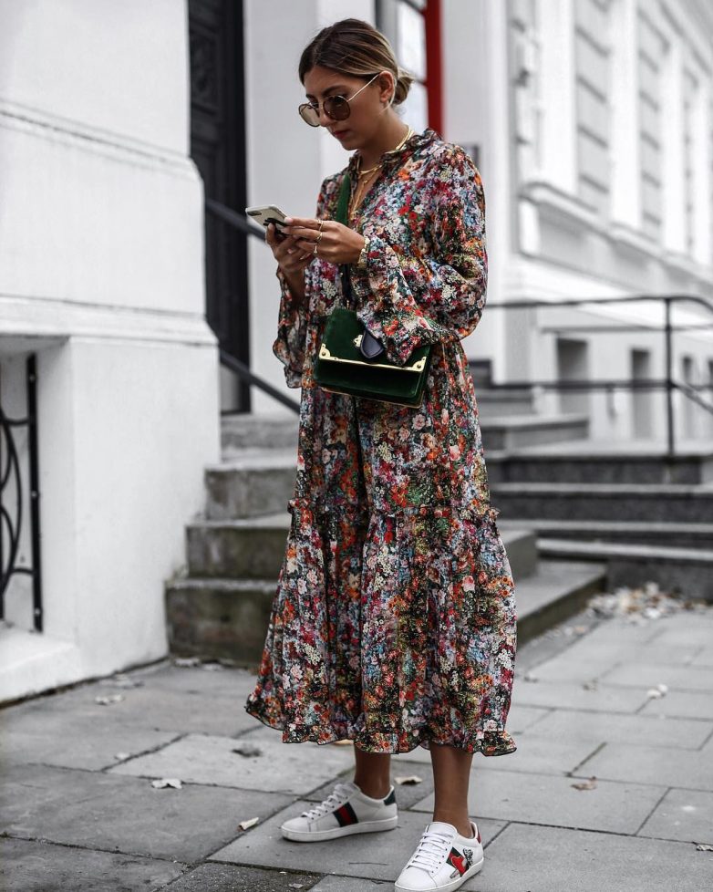 Любимые платьица с рюшами и оборками, цветочными принтами, вырезами, обнаженными плечами можно сочетать с грубой или спортивной обувью и выглядеть невероятно стильно.