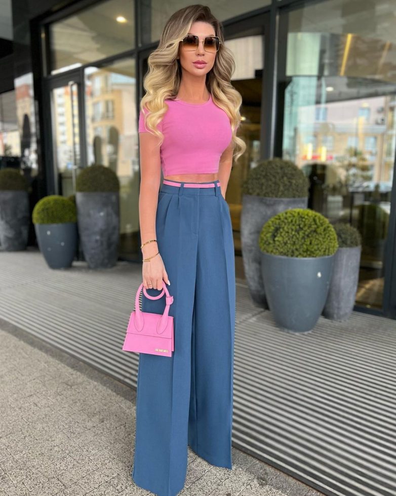 Если вы любительница ярких образов, тогда вам нужно знать главное правило – с красочным оттенком нужно выбирать и один нейтральный цвет, который сможет снизить градус эксцентричности. В 2022 году отличной комбинацией станет оранжевый совместно с белым, молочным или бежевым цветом. К примеру, оранжевый костюм и белая майка – это безупречный ансамбль.Голубой + желтый