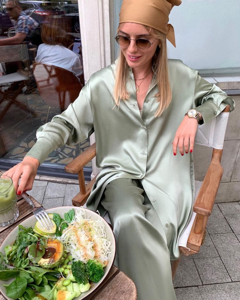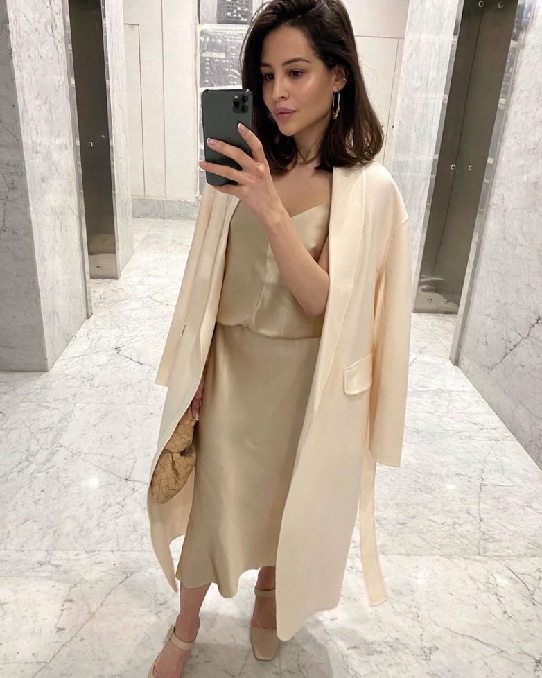 Одежда в бельевом стиле идеально комбинируется с различными трикотажными вещами, пальто в классическом крое, вязаными кардиганами и кофтами, брюками любой фактуры. Для создания модного лука стоит подобрать родственные цвета, чтобы блеск одежды в бельевом стиле не испортил весь образ.
