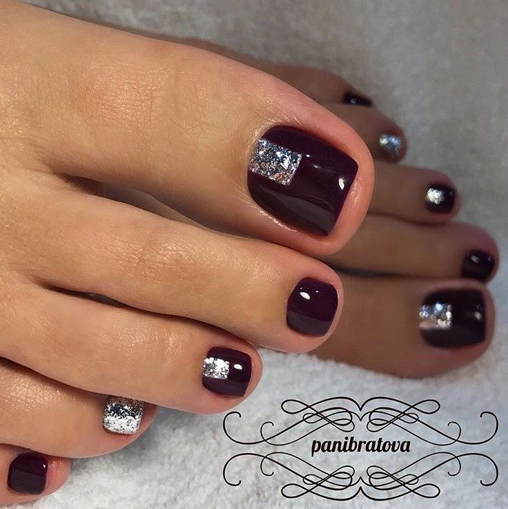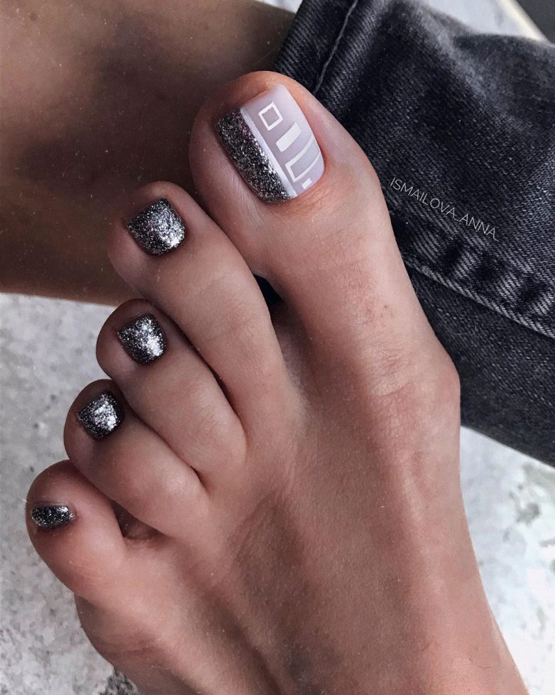 Идеи педикюра с серебром