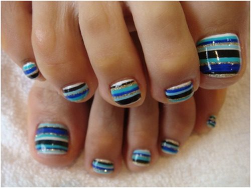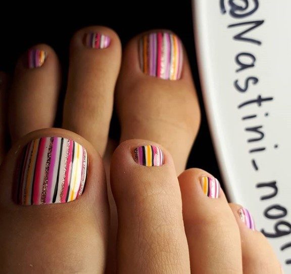 Идеи полосатого педикюра